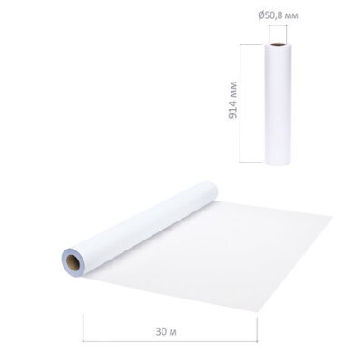 Бумага широкоформатная рулон для плоттера, 914 мм х 30 м х втулка 50,8 мм, 160 г/м2, белизна CIE 146%, BRAUBERG, 110624