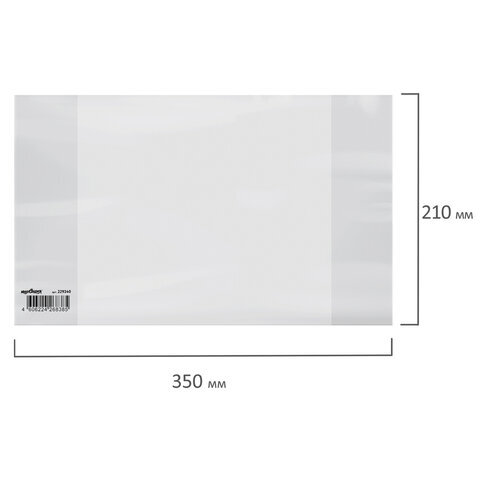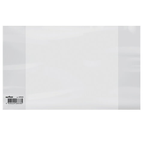 Обложка ПП со штрихкодом для тетрадей и дневников, ПЛОТНАЯ, 100 мкм, 210х350 мм, прозрачная, ЮНЛАНДИЯ, 229340