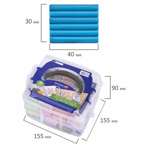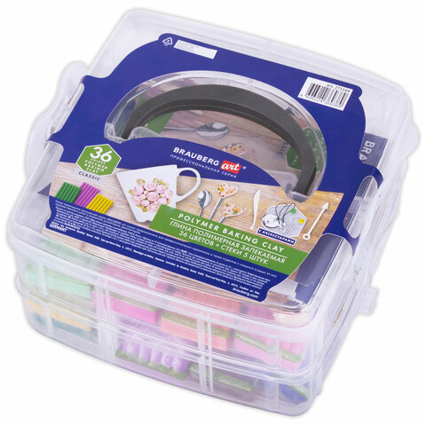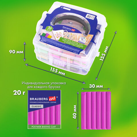 Глина полимерная запекаемая, НАБОР 36 цветов по 20 г, с аксессуарами в кейсе, BRAUBERG ART, 271164