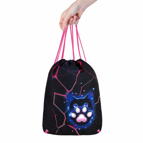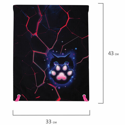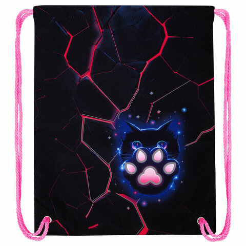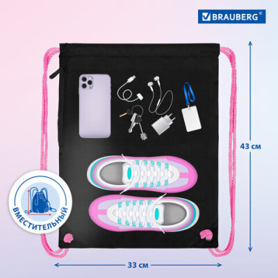 Мешок для обуви BRAUBERG PREMIUM, карман, подкладка, светоотражайка, 43х33 см, "Pink lava", 273441