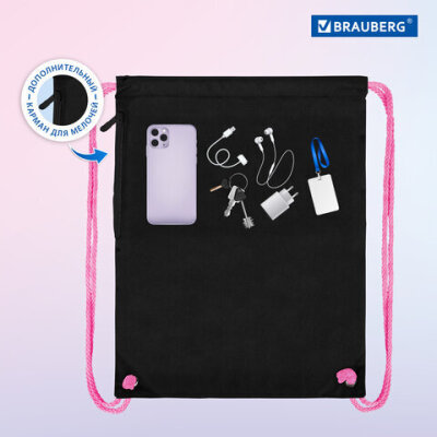 Мешок для обуви BRAUBERG PREMIUM "Pink lava" – необходимый аксессуар в школе! Подходит для сменной обуви и спортивной формы. Затягивается двумя шнурками. Можно носить на плечах за спиной.