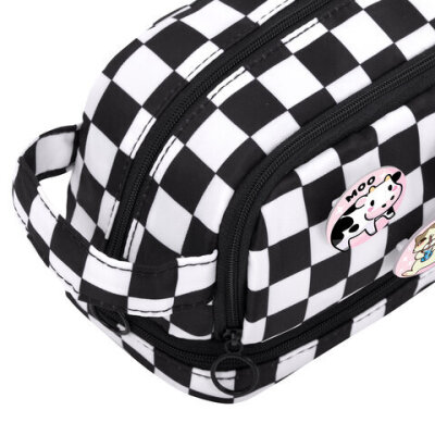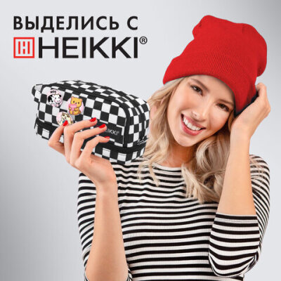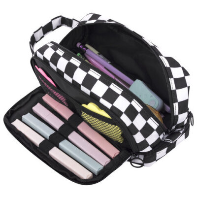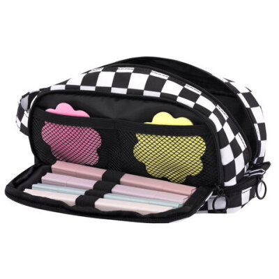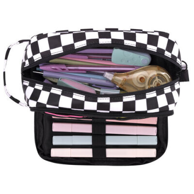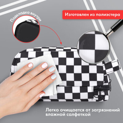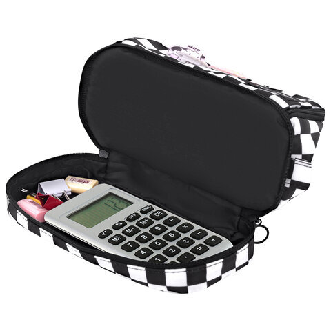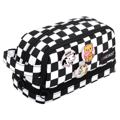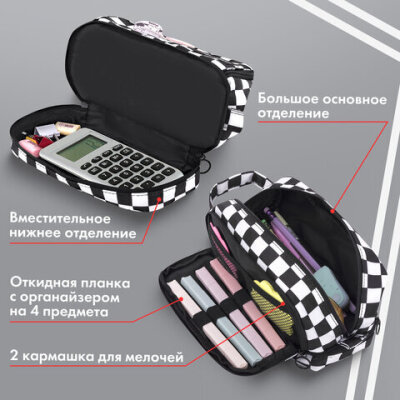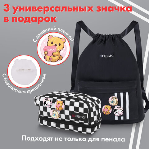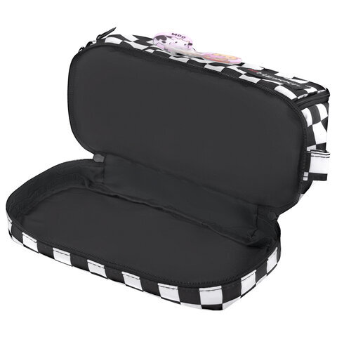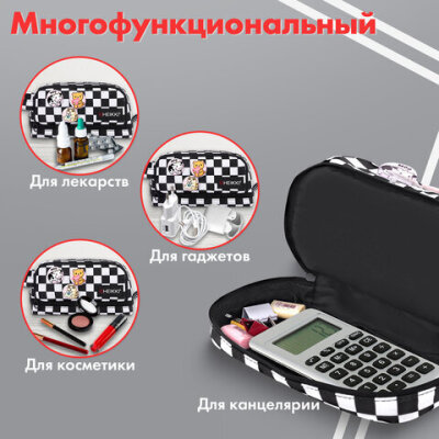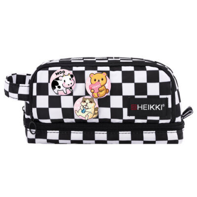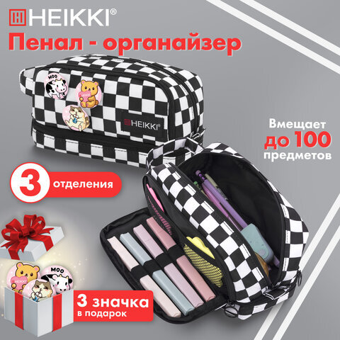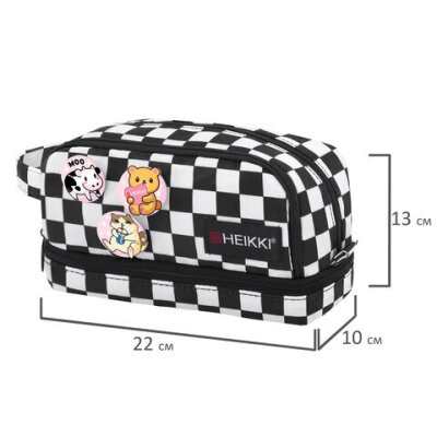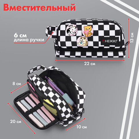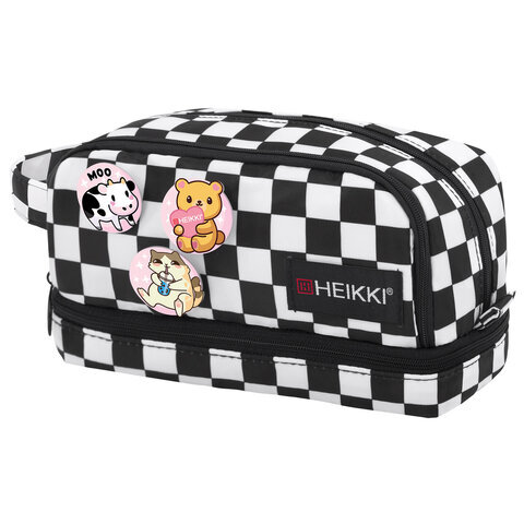 Пенал-органайзер HEIKKI (ХЕЙКИ) с ручкой, значки, 2 отделения, откидная планка, 22x13х10 см, "Black&White", 273601