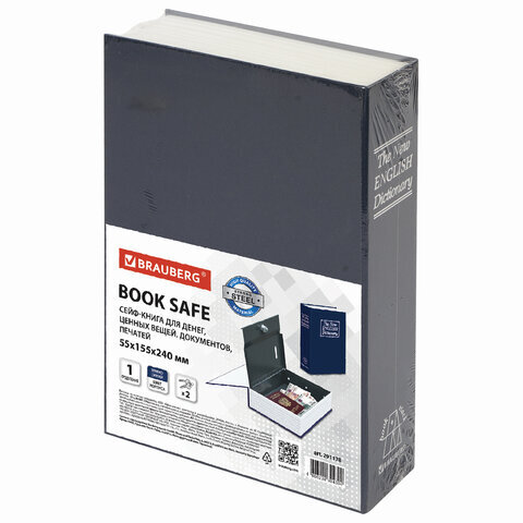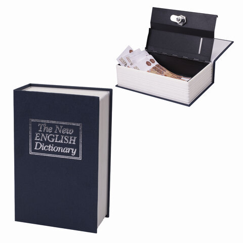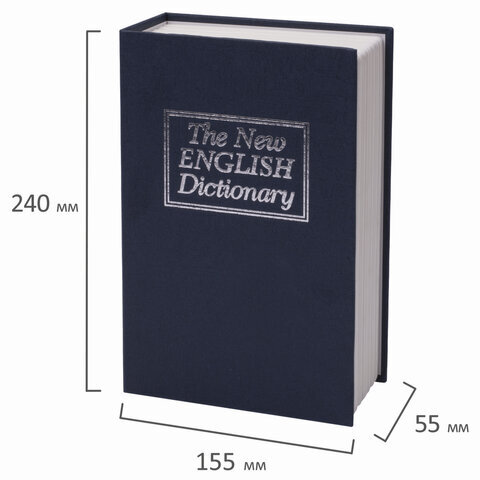 Сейф-книга "Английский словарь", 55х155х240 мм, ключевой замок, темно-синий, BRAUBERG, 291178