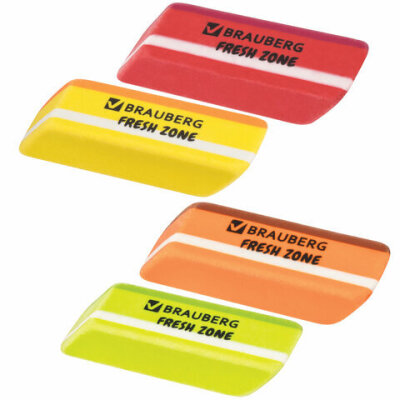 Ластик большой BRAUBERG "Fresh Zone", 60х18х12 мм, цвет ассорти, прямоугольный, скошенный, 228717