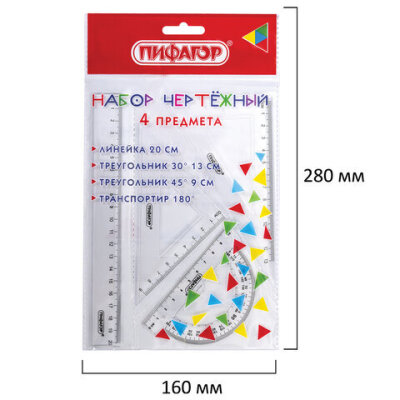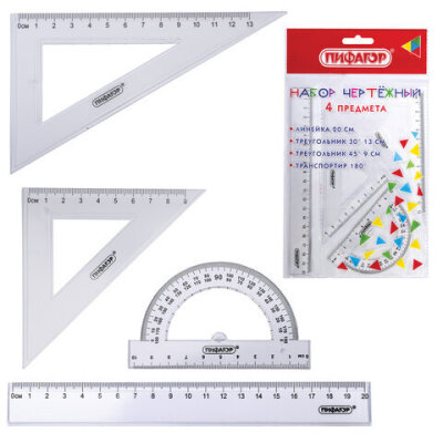 Набор чертежный геометрический ПИФАГОР предназначен для выполнения чертежных работ.