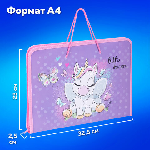 Папка для труда ПИФАГОР А4 "Sweet Dreamer" с ручками предназначена для хранения и переноски тетрадей, альбома для рисования, цветной бумаги, картона и прочих бумаг.