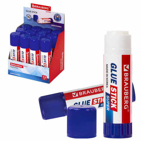Клей-карандаш BRAUBERG SUPER, 36 г, ЮЖНАЯ КОРЕЯ, 229543