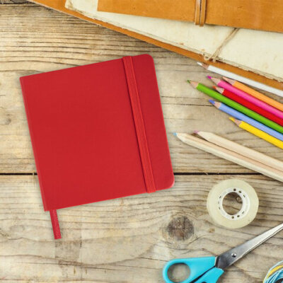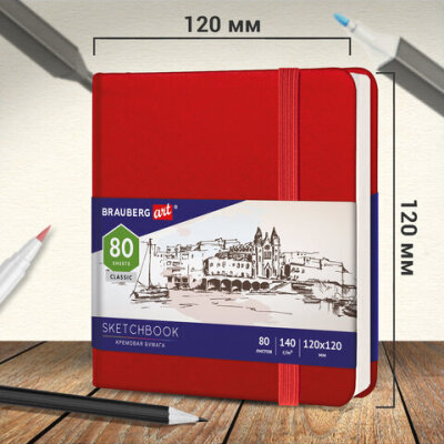 Скетчбук, слоновая кость 140 г/м2 120х120 мм, 80 л., КОЖЗАМ, резинка, BRAUBERG ART CLASSIC, красный, 113190