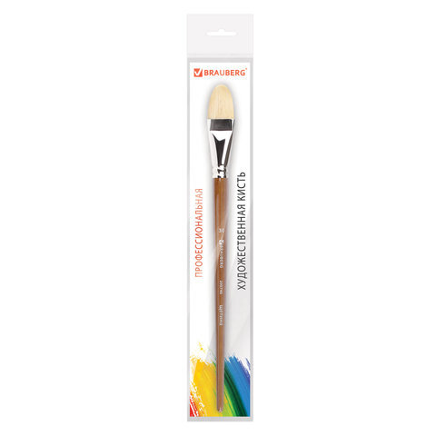Кисть художественная профессиональная BRAUBERG ART CLASSIC, щетина, овальная, № 30, длинная ручка, 200740