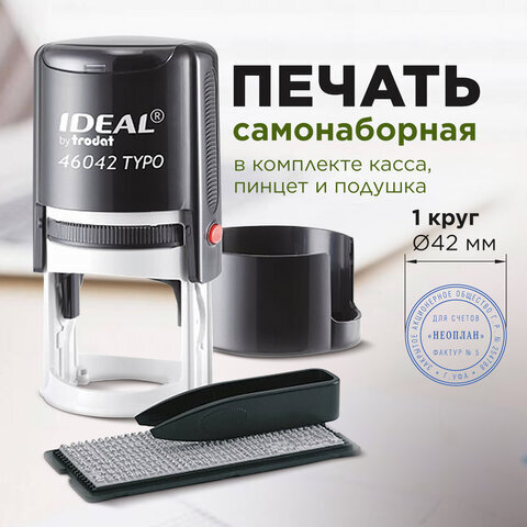 Печать самонаборная 1-круг, оттиск D=42, синий, TRODAT IDEAL 46042DB-R1, крышка, КАССА В КОМПЛЕКТЕ, 161483