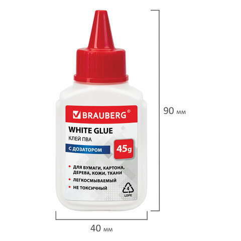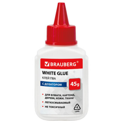 Клей ПВА BRAUBERG предназначен для склеивания бумаги, картона, фотографий, дерева и кожи.