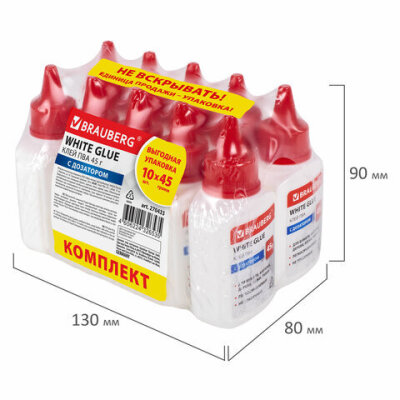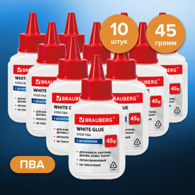 Клей ПВА КОМПЛЕКТ 10 штук х 45 г (бумага, картон, дерево), ВЫГОДНАЯ УПАКОВКА, BRAUBERG, 270433, 93
