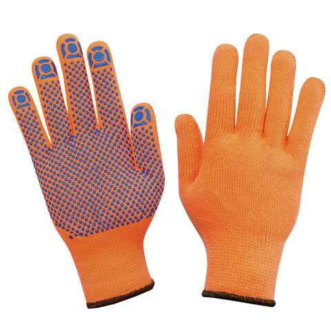 Перчатки акриловые РУБИФРОСТ ЗИМНИЕ 1 пара, 10 класс, 50-56 г, размер 9, ПВХ ТОЧКА, утепленные с начесом внутри, СВС, ac31pd оранж