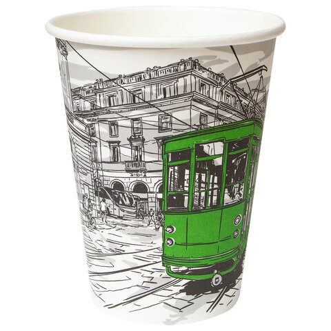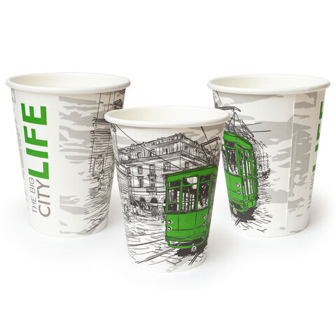 Стакан одноразовый бумажный 300/360мл d-90мм с печатью, ГОРОД, КОМПЛЕКТ 50шт, WELDAY, 702696