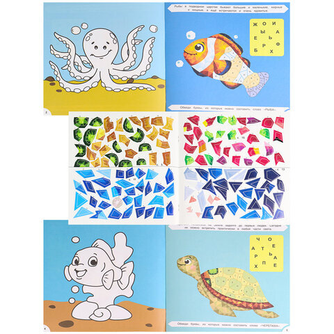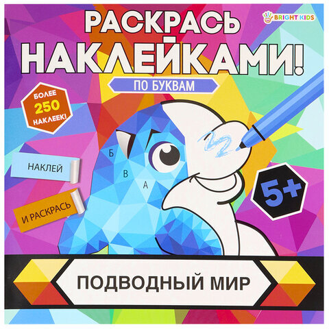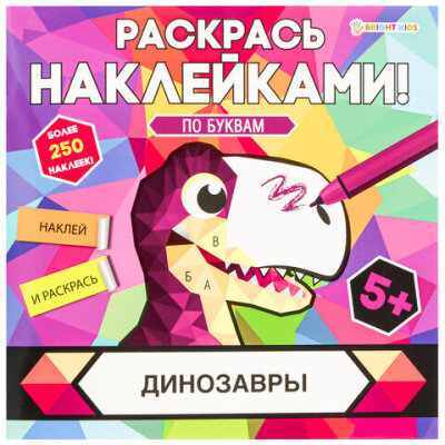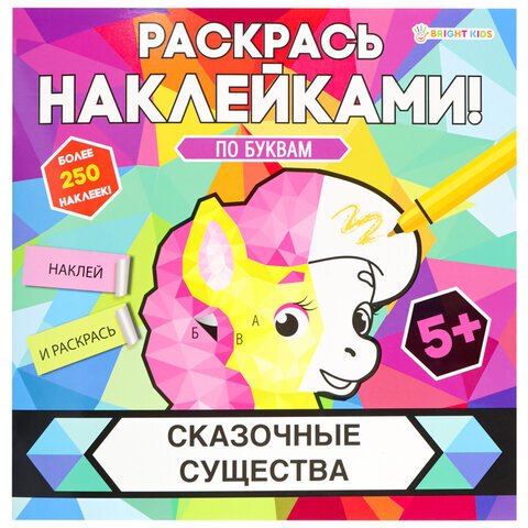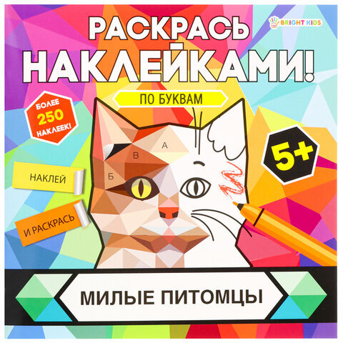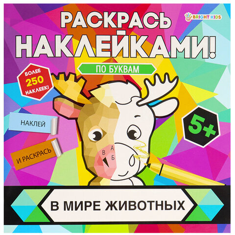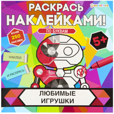 Раскраска с наклейками "Раскрась наклейками! По буквам", АССОРТИ, 215х215 мм, 16 стр., BK