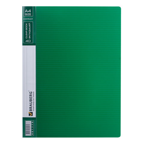 Папка 40 вкладышей BRAUBERG "Contract", зеленая, вкладыши-антиблик, 0,7 мм, бизнес-класс, 221779