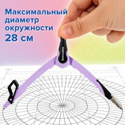 Циркуль с защитным колпачком BRAUBERG "ULTRA", 135 мм, лавандовый, блистер, 210819