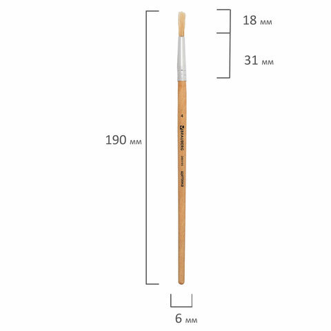 Кисть BRAUBERG, щетина, круглая, № 4, 200195