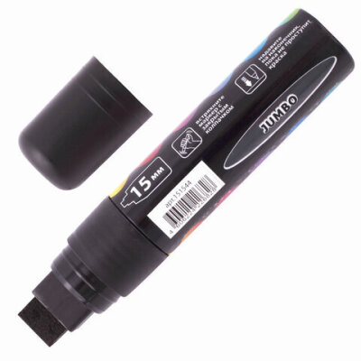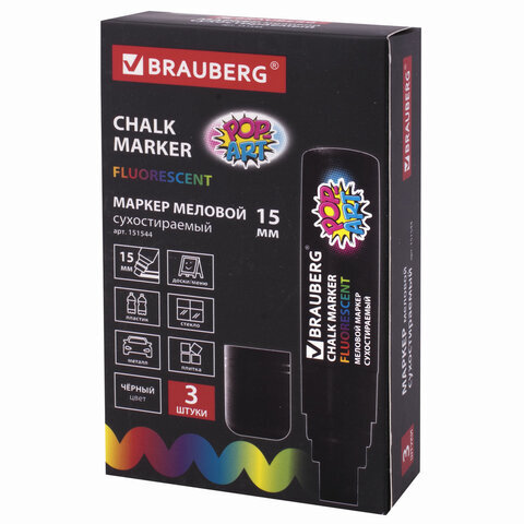 Маркер меловой "POP-ART" ЧЕРНЫЙ, 15 мм, стираемый, для гладких поверхностей, BRAUBERG, 151544
