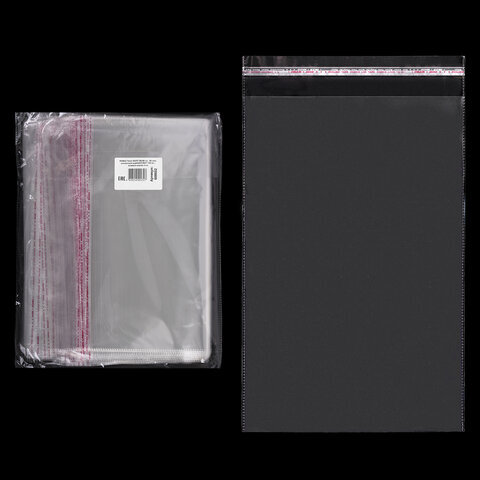 Пакет БОПП с клеевым клапаном, КОМПЛЕКТ 100 шт., 25х35+4 см, толщина 30 мкм, с усиленным швом