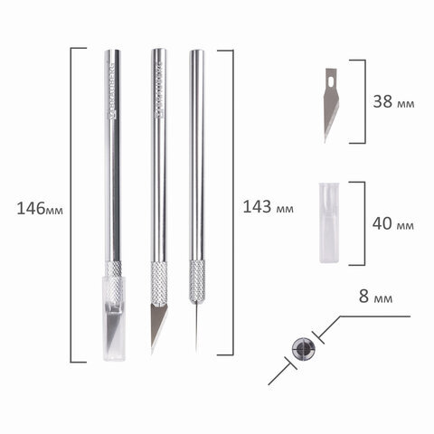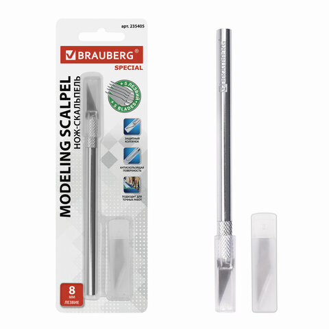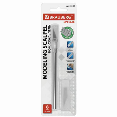 Нож макетный (скальпель) BRAUBERG "Special", 6 лезвий в комплекте, металлический корпус, блистер, 235405
