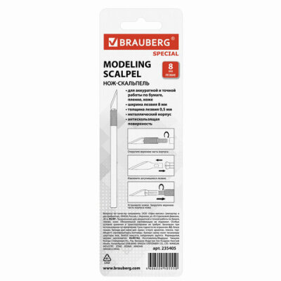 Макетный нож-скальпель BRAUBERG предназначен для аккуратной и точной работы по бумаге, пленке, коже.