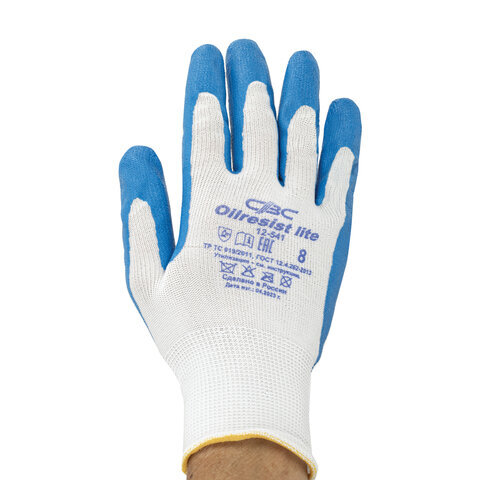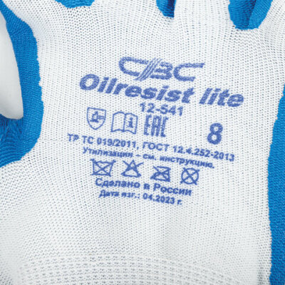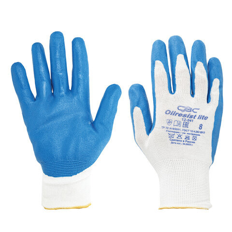 Перчатки полиэфирные ОИЛРЕЗИСТ ЛАЙТ маслобензостойкие 1 пара, 13 класс, 30-31 г, размер 8, покрытие - облив НИТРИЛОВОЕ, тактильные, СВС, nl13nt ЛАЙТ