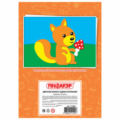 • Цветная бумага ПИФАГОР, состоящая из ярких и насыщенных цветов, позволит создать прекрасную аппликацию или поделку.