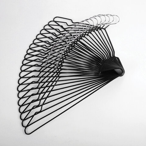 Набор из 20 прочных черных металлических вешалок BRABIX для одежды со специальным резиновым покрытием. Такое покрытие плечиков для одежды не дает одежде скользить по вешалке.