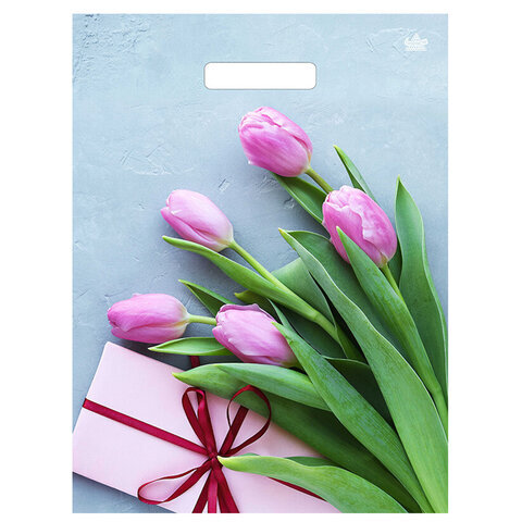 Пакет с вырубной ручкой ПВД, 40х31 см, "Тюльпаны", 60 мкм, н00212987