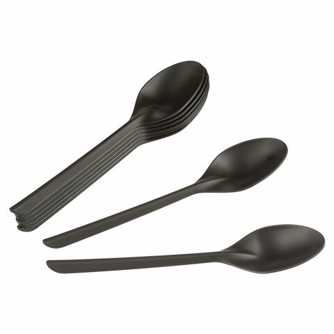 Ложка столовая одноразовая полипропиленовая 173 мм черная, КОМПЛЕКТ 50 шт., ПРЕМИУМ, WELDAY (ВЭЛДЭЙ), 881102