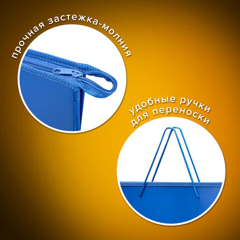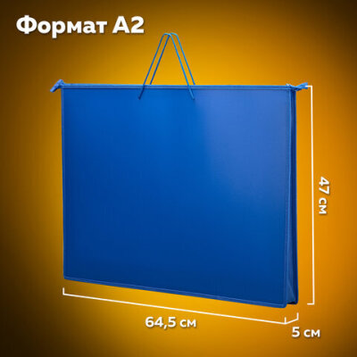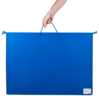 Папка для рисунков и чертежей на молнии с ручками ПИФАГОР А2, 1 отделение, пластик, ручки-шнурок, синяя, 270874