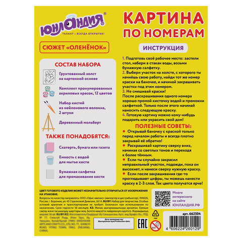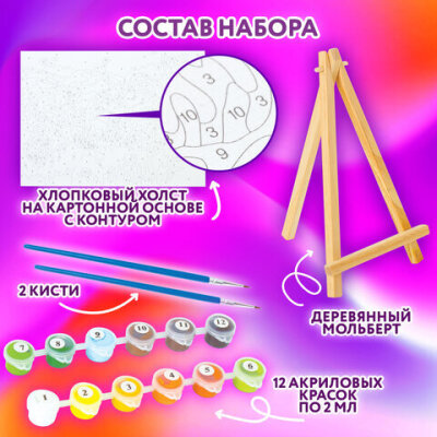 | Комплектация | акриловые краски, кисть, холст на подрамнике |