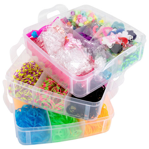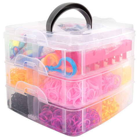 Набор резинок для плетения украшений 3 000 шт., 15 цветов, бокс, бусины, станок, BAMBOX (БАМБОКС), 665976