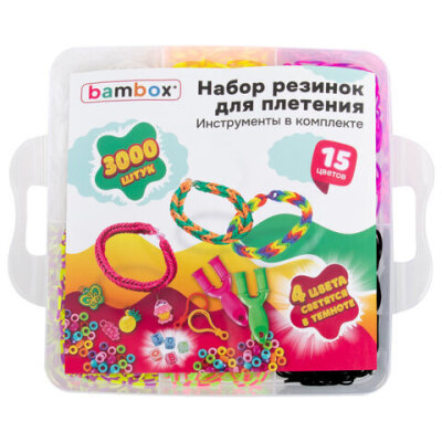 • Резинки для плетения BAMBOX пригодятся для изготовления красивых браслетов, подвесок и других декоративных изделий (в том числе детских игрушек). Такой набор – это множество возможностей для творчества!