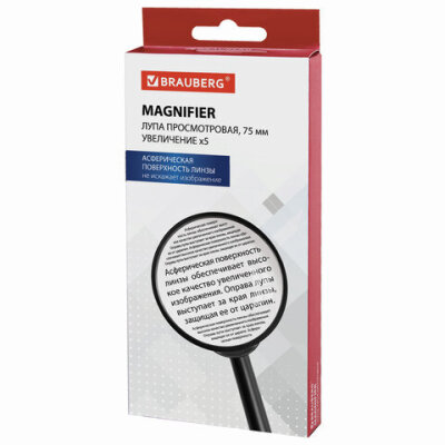 Лупа просмотровая BRAUBERG, диаметр 75 мм, увеличение 5, 451800