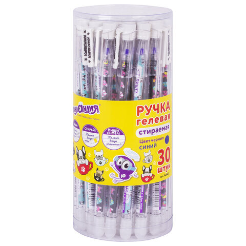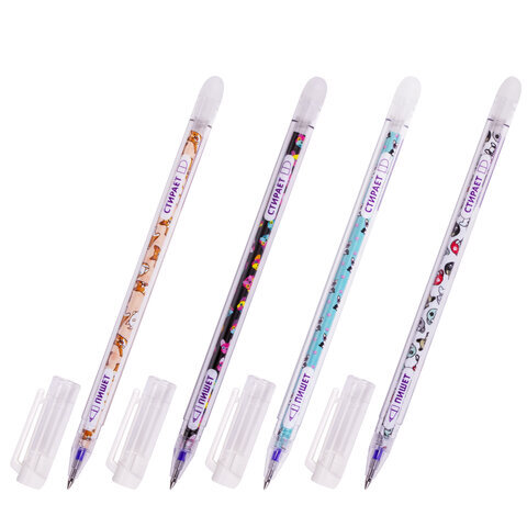 Ручка стираемая гелевая ЮНЛАНДИЯ "Щенята", СИНЯЯ, корпус ассорти, узел 0,5 мм, линия письма 0,35 мм, 143660