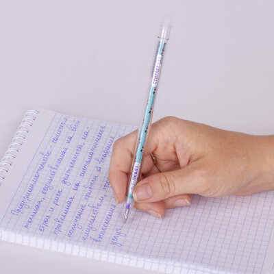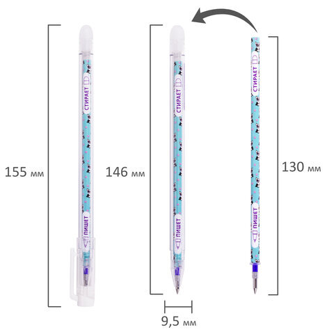 Стираемая ручка ЮНЛАНДИЯ "Щенята" пишет специальными гелевыми чернилами, которые становятся невидимыми при нагревании. Нагрев достигается ластиком, встроенным в корпус ручки. Возможность многократного стирания и повторного письма.