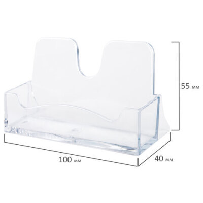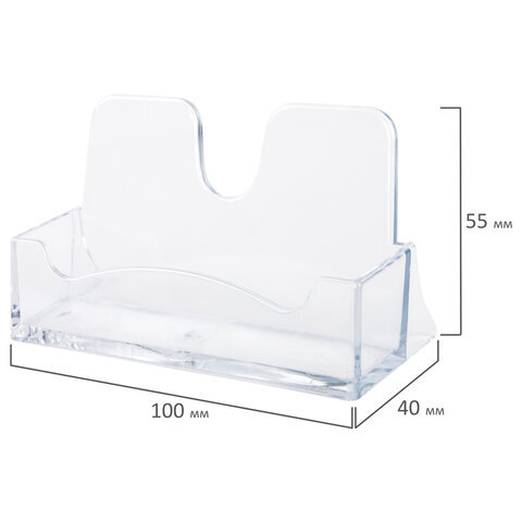 Подставка для визиток настольная BRAUBERG CLASSIC 40х100х55 мм, на 50 визиток, прозрачная, 238103