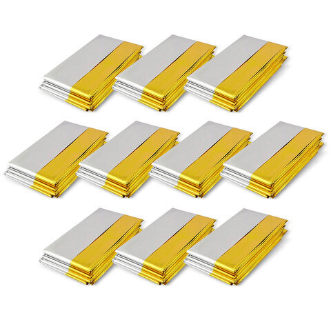 Термоодеяло покрывало изотермическое КОМПЛЕКТ 10 шт., серебро/золото, 160х210 см, DASWERK (ДАСВЕРК), 631159