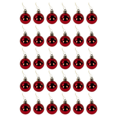 Шары ёлочные 30 шт., 4 см, "Solid Color", пластик, КРАСНЫЕ, глянец, ЗОЛОТАЯ СКАЗКА, 592496