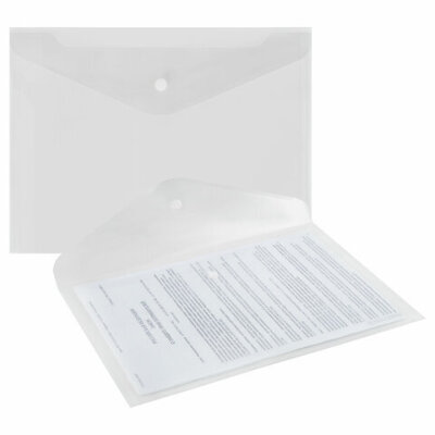 Папка-конверт с кнопкой BRAUBERG "SUPER", А4, прозрачная, ПРОЧНАЯ 0,2 мм, 272876