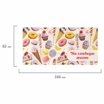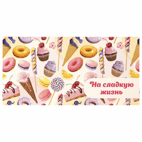 Конверт для денег "НА СЛАДКУЮ ЖИЗНЬ!", Десерт, 166х82 мм, блестки, ЗОЛОТАЯ СКАЗКА, 113756