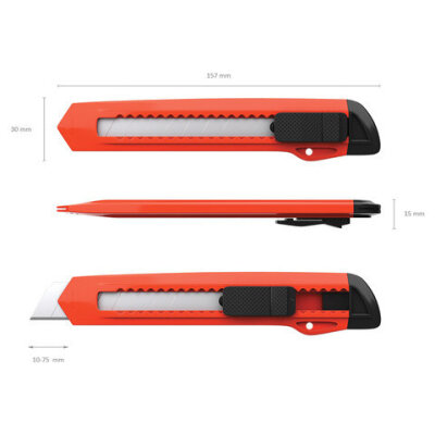 Большой канцелярский нож в удобном пластиковом корпусе с отверстием для подвеса. Удобная ручка ножа обеспечивает комфортное использование с максимальной безопасностью. Поставляется в нескольких вариантах цвета (без возможности выбора).