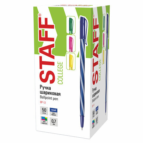 Ручка шариковая STAFF "College BP-12", СИНЯЯ, корпус ассорти, узел 0,7 мм, линия письма 0,35 мм, 143745