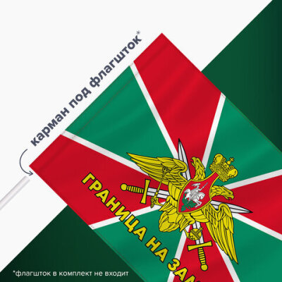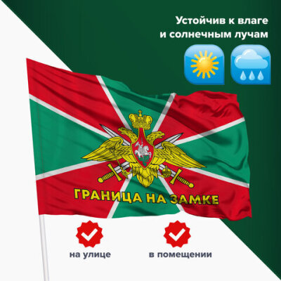 Флаг Пограничных войск России "ГРАНИЦА НА ЗАМКЕ" используется в качестве атрибута для военно-патриотических мероприятий, для установки в автомобиль, для декора помещений.