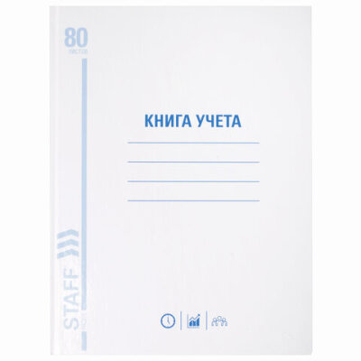 Книга учета 80 л., клетка, твердая, глянцевая, блок офсет, А4 210х265 мм, STAFF, 130071