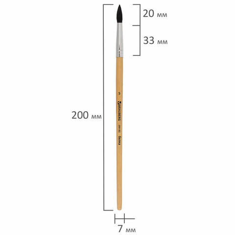 Кисть BRAUBERG, белка, круглая, № 5, 200182