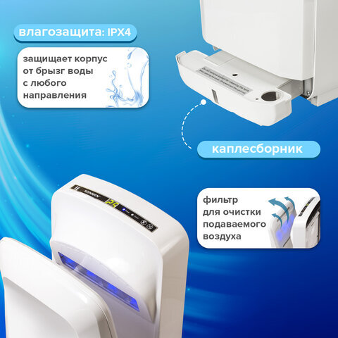 Сушилка для рук SONNEN K2, 1900 Вт, погружного типа, время сушки 10 секунд, пластик, белая, 604751