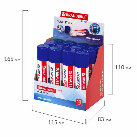 Клей-карандаш BRAUBERG SUPER, 21 г, ЮЖНАЯ КОРЕЯ, 229542